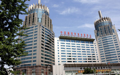 中国国际科技会展中心,又名中国国际科技会展中心。位于北三环马甸桥,中国国际科技会展中心雄伟的建筑造型、独具的建筑韵味使其无可争议的成为京北地区的地标性建筑。它的建成标志着京北地区拥有了首座集5A级智能化写字楼、高档酒店式商务公寓、设施先进的展览厅、国际水准的多功能会议厅、旋转咖啡厅、各种餐饮娱乐设施等于一体的大型、高档、多功能商务中心。