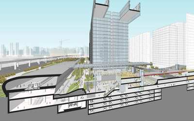 项目总建筑面积23万平米,包含3栋国际甲级写字楼,4层现代商业购物中心及地铁口下沉式城市广场,倾力打造集国际商务、交通换乘、时尚购物、文化休闲为一体的国际高端商务社区。
